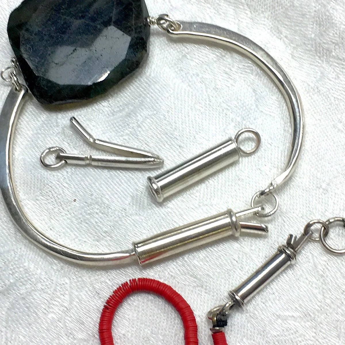 A tube clasp is a simplified box clasp with the “box” being a section of tubing.